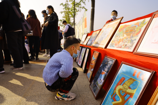 在“送文化”活动现场,艺术设计学院带着绘画作品、书法作品、文创产品及专业技能为鄂州市民和学生送上一场“文化盛宴”。建党百年主题艺术作品、校地文创融合案例“鄂州好礼”文化创意大赛获奖作品一一参展,学院师生现场为当地小学生画像并教授素描技巧,还赠送了自制文创礼品。