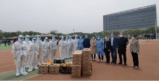 本网讯(通讯员 凃蓉 高靖)5月1日,五一国际劳动节当天校党委副书记郑丹凤带领校工会、党政办公室、人事处、学生处等相关部门负责人,深入一线走访慰问正在流芳校区田径场开展核酸检测的抗疫医务工作人员,向大家表示感谢和敬意,并向全校坚守防控一线、辛勤付出的教职工们表示关怀和慰问。