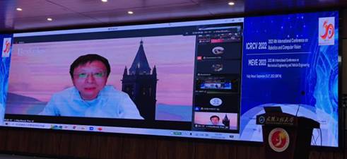 在大会报告环节,会议采用VooV远程会议的方式线上交流,大会邀请到来自美国的马里兰大学帕克分校Ming Lin教授(IEEE Fellow),美国加利福尼亚大学伯克利分校的Yi Ma教授(IEEE Fellow),东南大学的Xinde Li教授,韩国科学技术院的Jee-Hwan Ryu教授,佐治亚理工学院的HeinrichMatzinger教授,北京师范大学的BailuSi教授,昆明理工大学的HuiLiu教授和武汉科技大学的LirongYan教授带来精彩的大会报告。