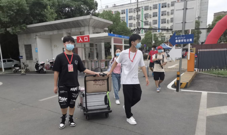 9月4日,材料学院迎来了一群可爱的新主人。由于当前疫情形势严峻、新同学们的家长不能进入学校,他们的行李搬运成了很大的问题。对此,材料学院鼓励大二大三学生参与新生“点对点”接应活动,确保每位新生都能够有一位学长学姐引领至迎新点、领取开学必备物品、顺利到达宿舍,让无法入校的家长们安心。红蓝黄白四种颜色的小马甲,代表的不只是接应新生的各个专业,更是一份责任,一份坚守,一颗只为新生到校顺利再苦再累也不怕的心。火热的太阳丝毫没能阻挡学长学姐帮助新生的热情,能让新生顺利开始大学生活是我们共同的目标,一声声真诚的感谢是对我们最大的认可和回报!