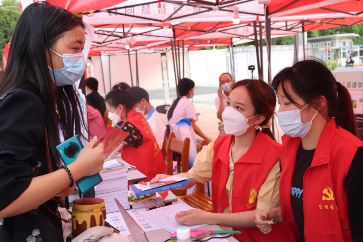 又到一年迎新季,再遇管院“志愿红”。管理学院“红旗领航员”志愿服务队与“星火”志愿服务队的219名志愿者们以“热情、贴心、高效”的服务理念,用细心周到的服务,传递管院真情。在迎新点,他们早早出发,等待新生到来,提醒管院“萌新”正确佩戴口罩,保持有效间距,引导大家有序进行扫码签到。在摆渡车旁,他们接过行李,在校园里来回穿梭,不管多么辛苦劳累,只为减轻新生们的压力,带给新生们温暖。在泰塑门口,他们拉着拖车,扛起行李,爬过陡坡,用行动诠释“送货上门”的贴心。他们,秉持着“奉献、友爱、互助、进步”的志愿服务精神,用一往无前的奋斗姿态和永不懈怠的精神,让管院“志愿红”闪耀在校园迎新路。