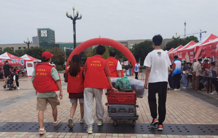 外语学院招募共计120余名学生志愿者们投入迎新工作,提前组织青年学生党员进园区、进楼栋、进宿舍进行全面消杀清洁。迎新期间,班主任和辅导员全程值守、全程陪伴,学生志愿服务者各尽其责,聚合全院师生力量为新生提供“不断线”服务。组织学生志愿者提前与新生进行“点对点”联系,组织师生志愿者开发定制“双语校园地图”,用中英双语图文视频带领新生提前识读校园,以“一站式”迎新服务让新生暖心、让家长放心。开展“结伴迎新路”活动,志愿者在迎新、送寝途中,围绕防范电信诈骗、校园疫情防控政策、学生纪律管理规定等方面为新生耐心讲解;设计“结伴校园游”活动,志愿者带队游览校园,以中英文双语讲解校史校情,促进学生朋辈在“结伴行”中共同成长。