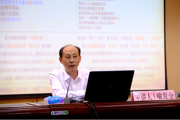喻发全以《学习全会精神,奋力开启学校高质量建设新征程》为题,围绕学习习近平新时代中国特色社会主义思想和十九届六中全会精神的核心要义两个方面进行了深入解读和深刻阐释。