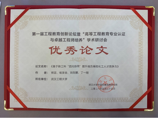 本次论坛暨学术研讨会面向全国征集优秀论文百余篇,经专家评审遴选优秀论文十篇,我院教师熊芸的投稿征文《基于新工科“四元协同”提升地方高校化工人才竞争力》被评选为优秀论文,并受邀作大会分会场报告交流。