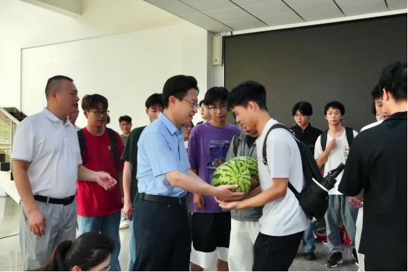 汪伟、张彦铎一行对辛勤工作、默默奉献的一线工作人员表示衷心的感谢,并送去了慰问物品,特别叮嘱大家在当前持续高温的情况下,要做好各项防暑降温措施,改善作业环境,注意劳逸结合,保质保量完成暑期校园各项维修改造工作。在图书馆慰问留校学生,张彦铎与复习备考学生亲切交流,对学生不畏酷暑、勤奋好学的精神予以表扬和肯定。勉励同学们坚定信心,发扬自强不息、艰苦奋斗的工大精神,用饱满的热情和积极的心态面对困难和挑战。在大学生活动中心看望慰问暑期留校备战“挑战杯”“节能减排”等学科竞赛团队成员,张彦铎、李志旭关切询问备赛进展与留校生活情况,嘱咐师生要劳逸结合、注意防暑,勉励大家在国赛中展示才华、为校争光。近期各学院也积极响应号召,通过走访宿舍、考研复习教室,到实验室开展慰问等形式,切实表达了对留校学子的关怀与祝福。