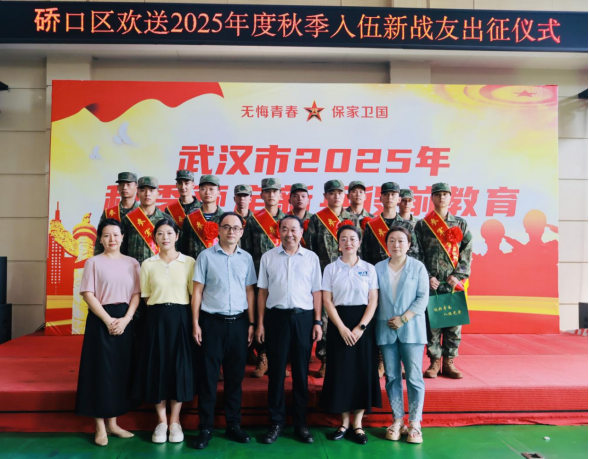 本网讯(通讯员 刘敏 何世凯)9月15日下午,校党委副书记李志旭带队前往蔡甸区野战国防园参加硚口区2025年度秋季入伍新兵出征仪式。学工部副部长陈俊、各学院党委副书记及辅导员参加活动。
