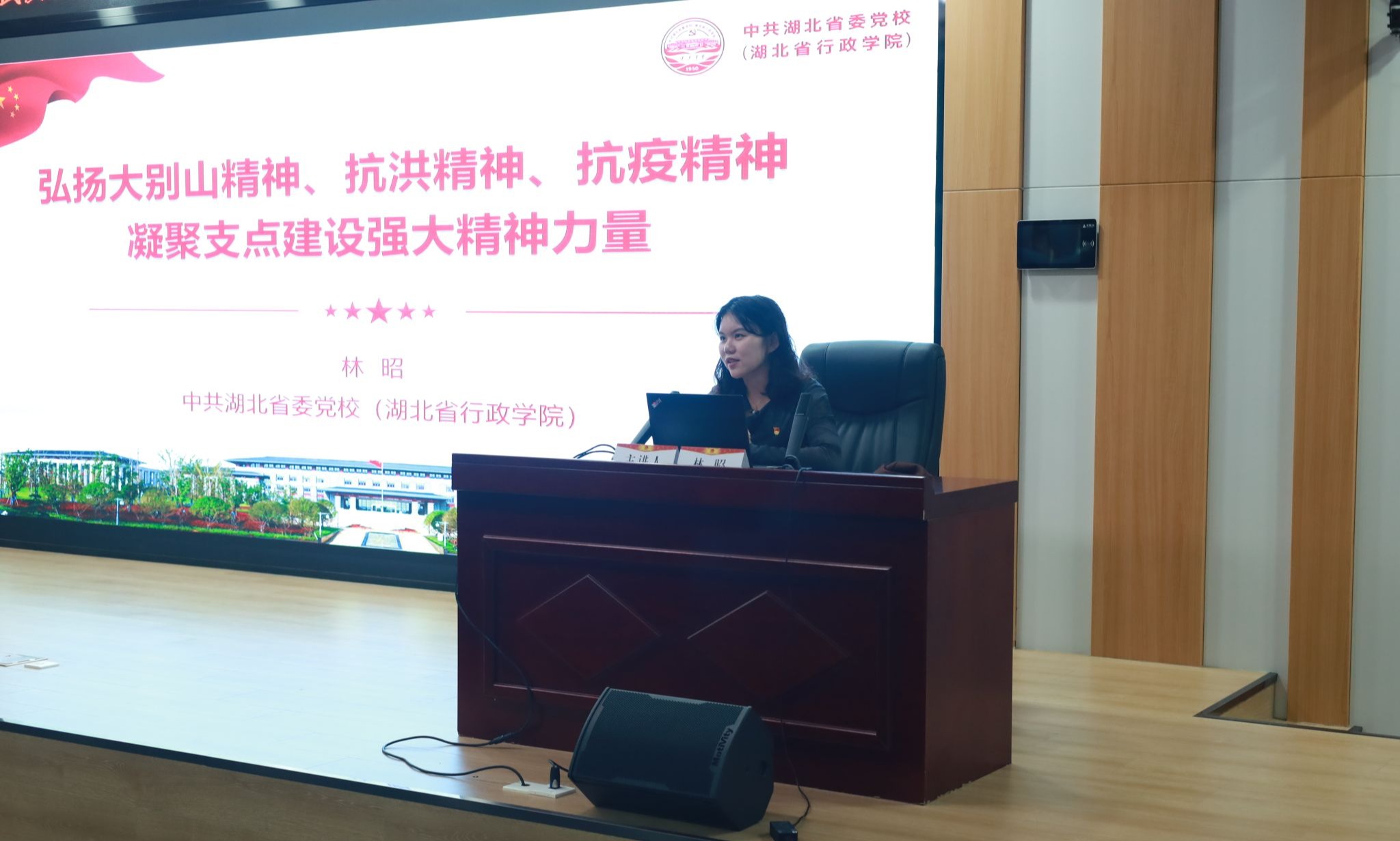 会后,中共湖北省委党校文史教研部教师林昭教授为学员授课。她以《弘扬大别山精神、抗洪精神、抗疫精神,凝聚支点建设强大精神力量》为主题,系统阐释了“三大精神”的深刻内涵与时代价值,使学员们对伟大精神的传承与实践有了更深刻的领悟。