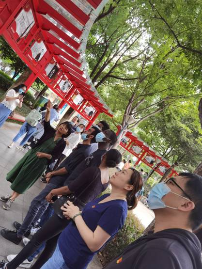 廉政文化公园是武汉市著名的反腐倡廉教育基地。该公园把“红色廉政”融入现有的公园环境内,在不改变绿化景观的前提下,以各种雕塑、主题石、宣传廊等形式,植入了红色廉政主题。老师和留学生代表们先是到达廉政文化公园,一边认真聆听书记、院长李琼同志的讲解,一边观景思廉,谨记廉洁精神。