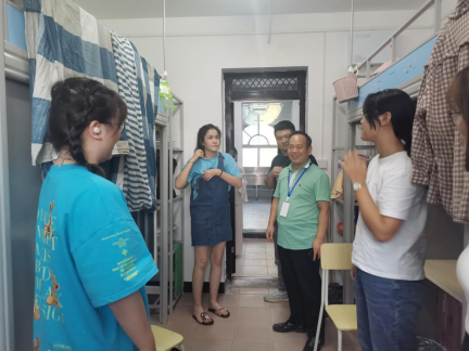 交流会结束后,学院党委书记夏志敏、党委副书记王超、2021级新生班主任及全体辅导员前往新生宿舍,走访慰问新生整体生活情况。