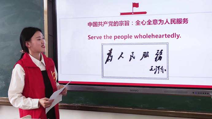 线下讲党史,笃信笃行担使命。志愿服务队队员2019级谢瑶同学通过“大手牵小手,党史入童心”的微党课,向小学生们分享红色故事、抗疫英雄事迹,把党的历史深植在留守儿童心中,增强他们的爱党爱国情感,让党的百年历史点亮孩子们的梦想,引导他们听党话、跟党走,勇做担当民族复兴大任的时代新人。