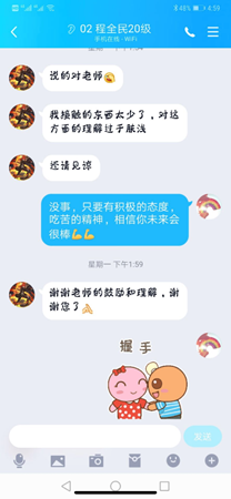 河北出现疫情后,我院来自河北籍的20名学生一直牵动着辅导员孙奕的心,通过“一对一”的电话沟通交流,在确保所有学生自身安全的前提下,辅导员孙奕认真倾听同学们的假期分享,及时告知家长和学生学业情况、返校要求,做好思想教育管理和重点关爱引导,为学生和家长排忧解难,送去特殊时期的特别关怀和新春祝福。