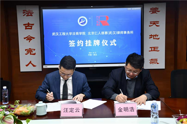 北京仁人德赛(武汉)律师事务所主任汪定云对尊龙凯时人生就是博一到表示热烈的欢迎,并介绍了仁人德赛律师事务所相关情况,金明浩对仁人德赛律师事务所的支持表示感谢。他希望通过此次研究生工作站和大学生实习和劳动实践基地协议签订、授牌,把产学研合作做深做实,助力法商研究生、本科生人才培养变质量发展。
