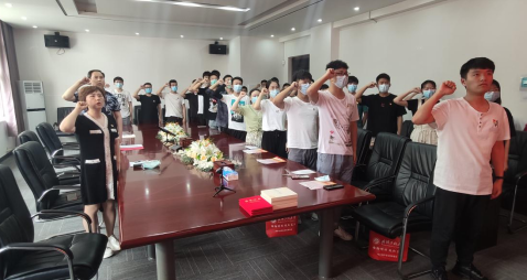 在庄重的入党誓词前,全体党员肃然起立,高举右手,庄严宣誓,重温入党誓词。