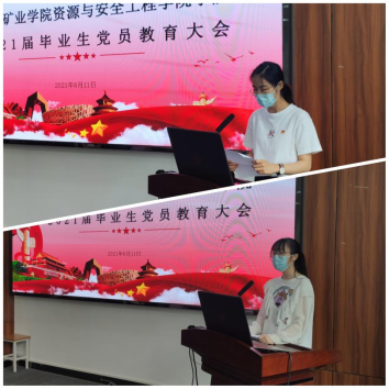 本网讯(通讯员 郑浩然)为切实加强毕业生党员教育和管理,增强毕业生党员的党员意识和组织观念,充分发挥党员在毕业生文明离校中的先锋模范作用。6月11日,资源与安全工程学院在学院419会议室组织召开了“心怀母校恩,起航新旅程”2021届毕业生党员教育大会。会议由党委副书记李佳主持,党委书记江本武,学生工作办公室全体成员和全体毕业生党员参加。