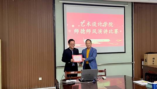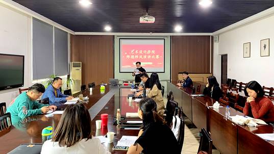 本网讯(通讯员 高靖)为进一步加强艺术设计学院师德师风建设,推进落实学校师德专题教育和2021年度师德师风宣传教育月活动部署,引导广大教师以德立身、以德立学、以德施教、以德育德,我院于10月14日在学院会议室开展了师德师风演讲比赛。