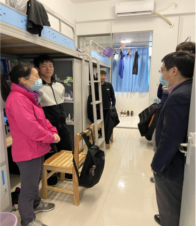 教学检查结束后,学院班子还深入到学生宿舍,详细地了解当前学生返校情况,并看望了返校学生们。院长姚槐应代表学院欢迎同学们顺利返校,并鼓励同学们在新学期、新阶段再接再励,以只争朝夕的昂扬斗志投入到学习当中,不负韶华、再创佳绩。(审稿 孔海霞)