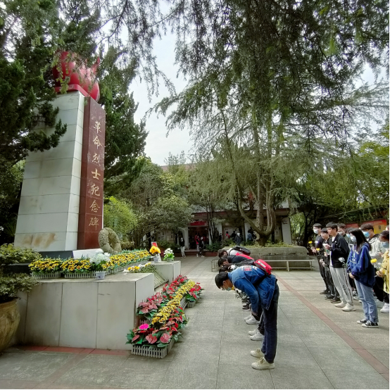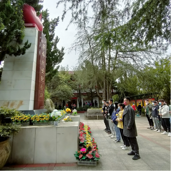 在革命烈士纪念碑前,学生们手持鲜花依次向烈士敬献。学院党委副书记向翼凌老师发言,倡导广大同学缅怀英烈,铭记历史,时刻牢记党员身份,从自身做起,奋发图强,为祖国建设添砖加瓦。