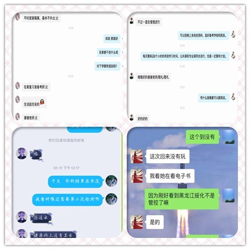 1月初,河北疫情来势汹汹,学院党委高度重视,第一时间做出应对,精准摸排到中高风险区学生近30人,迅速建立起“一对一”责任到人、不留死角的疫情防控工作责任落实体系。学院分管领导、辅导员、班主任每天通过电话、微信、视频等与学生进行不断线联系,指导居家学生积极配合当地完成核酸检测工作,及时了解学生思想和生活状况,同时与家长保持密切沟通。学院通过微信公众号每日推送文章,普及疫情防控和心理健康知识,帮助学生保持良好状态,切实筑牢战“疫”心理防线。