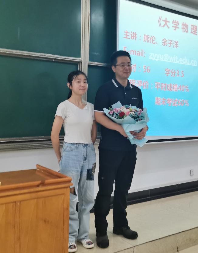 议式上,副院长李圆媛向同学们介绍了余子洋老师的学术背景和基本情况后学生代表为余子洋老师送上鲜花,表达了大家对新授课老师祝福和期待,希望老师能潜心教学、倾心育人。余子洋老师感谢学校和学院及同学们的信任,“做老师有着无限的光荣和幸福,我一定要三尺讲台度芳华,不忘初心育桃李”。