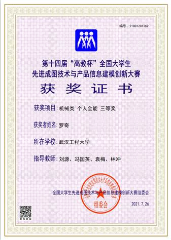 该项赛事一直由机电工程学院机械制图教研团队负责组织和指导,该团队由刘源副教授、袁梅副教授、林冲副教授、冯国英博士、李育房博士等教授组成,历年来吸引着机械类本科生加入团队的创新实践教育和学科竞赛活动,着力培养和提升学生的三维创新设计、机械制图等实践能力,形成了较为规范的本科生工程实践能力和学科竞赛能力培养机制。本次国赛中,获得机械类团体奖项和个人全能奖项的同学以优秀的个人能力充分展现了学院创新实践教育的成效。成图竞赛的图片及部分获奖证书如下。
