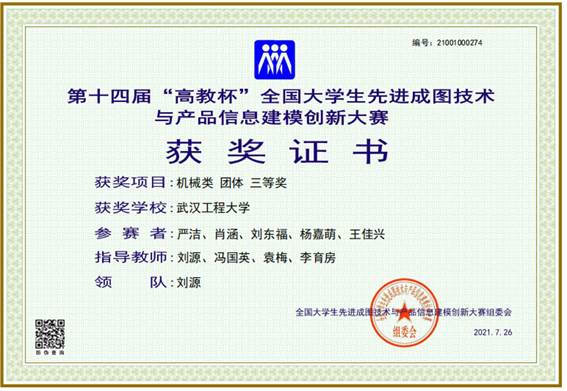 本次全国竞赛所取得的佳绩离不开我校教务处和创新创业学院的政策支持及正确引导,也离不开机电工程学院领导对学科竞赛的支持与鼓励。学院历来重视各类学生竞赛,通过以赛促教,提高了本科教学及机械基础课程的教学质量,培养了学生的工匠精神,激发了学生的创新意识,强化了数字化设计与制造技术,探索了图学的发展方向,促进了高校教育教学改革,为中国制造走向中国创造催生和培养大量优秀人才。(审稿 李芳)