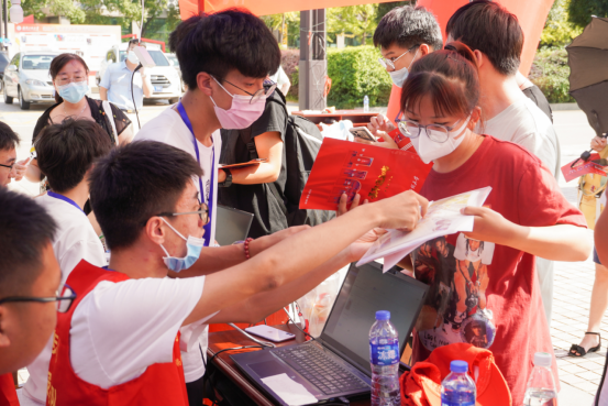 学院还为新生精心准备了大礼包。学院辅导员贴心地为家长解答问题并指引家长来到休息区、送上解暑矿泉水。迎新期间许志伟志愿服务队以及志愿者们爱心接力,为新生搬运行李,耐心解答新生和家长问题。周到细致的服务让新生及家长第一时间感受到化药学院大家庭的温暖。