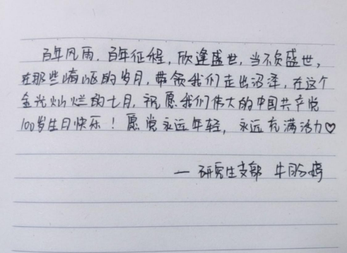 青年党员们通过文字表达对中国共产党的热爱、对祖国的热爱,体现了新时代青年党员的战斗力和凝聚力。