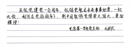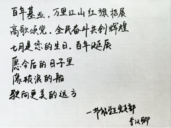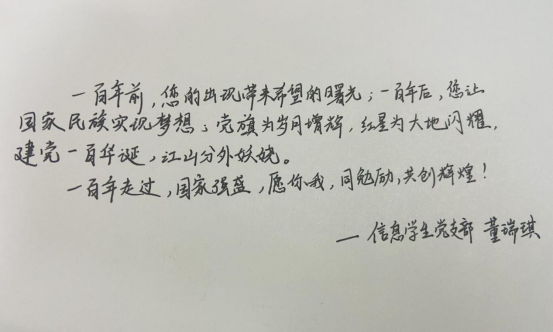 本网讯(通讯员 张舒 李奥)“不忘初心,牢记使命。”为迎接中国共产党成立100周年,在七月一日建党节之际,光电信息与能源工程学院、数理学院的青年党员们用文字向党和祖国深情告白。