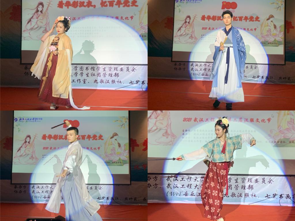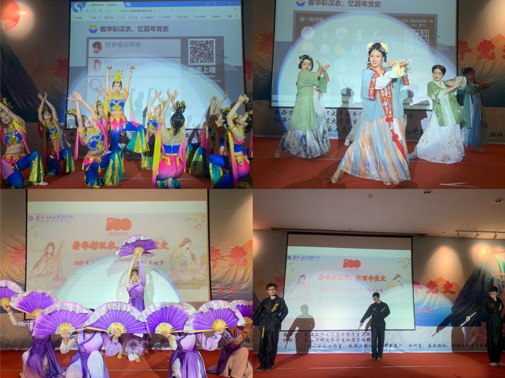 晚会上,我校族林风社团带来的三支汉舞《心灵之翼》、《烟雨行舟》、《乐天舞》诠释了什么是汉韵之美。我校丝竹苑社团带来的古筝独奏《井冈山上太阳红》、WIT音乐工作室以及图书馆学生管理委员会带来的歌唱表演均秉承了悠远的国乐之风,余音绕梁,不绝于耳。七笔书画社和南风诗社的合作节目《御龙行》将中国书法和诗词朗诵完美融合,疾风棍社在《棍展风华》节目中向大家展示了武术与双截棍的巧妙结合,体现了汉服魅力以及中华优秀传统文化的博大精深,充分展现了当代青年人对中华优秀传统文化的热爱和朝气蓬勃的风采。