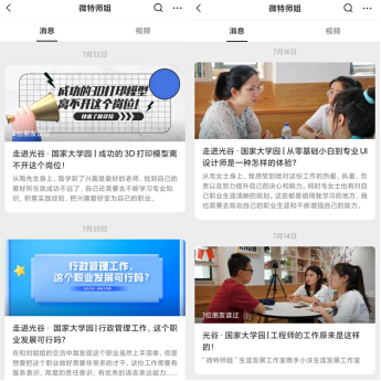 据悉,“微特师姐”生涯发展暑期社会实践团队依托于2018年12月建立的“微特师姐”生涯发展工作室,工作室成立近三年来,聚焦网络思想政治教育和大学生生涯教育,持续运营“微特师姐”微信公众号发布原创文章280余篇,合计32万余字,“师姐有话说”视频号合计发布图文80余个,覆盖人次20万余次,同时,积极开展系列生涯发展活动和就业指导活动,努力促进大学生更高质量和更充分就业。(审稿 郑冬洁)