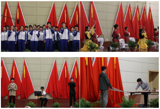 会中,为引导师生主动“学党史、强信念、跟党走”,学生用精彩绝伦的表演献礼建党100周年。《党的赞歌》、《永远跟党走》、《庆七一诗歌》的朗诵大气磅礴,重温了在座师生的入党初心;《没有共产党就没有新中国》的大合唱掷地有声,激起了在座师生的奋斗决心;《新疆民族舞》、《少年》的歌舞演绎热情澎湃,坚定了在座师生的奋斗信心。