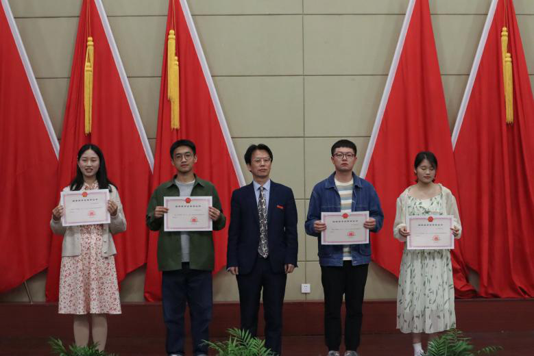 大会在庄严肃穆的国歌声中拉开了帷幕。大会表彰了在“德、智、体、美、劳”各方面取得优异成绩的近百名学生。“奖学金、三好优干、优良学风班”奖项激励同学们“以学习为本,以成绩为荣”;“活力团支部、优秀共青团员团干、优秀青年志愿者”勉励同学们“弘扬五四传统,勇作时代先锋”;“挑战杯、西门子杯、节能减排、弘电杯”等竞赛成果鼓励同学们“学思践悟相结合,创新创造有你我”;“抗疫先进个人”引领同学们“胸有家国情怀,甘于无私奉献”;“文明寝室”鞭策同学们“团结友爱一家亲,卫生安全牢记心”。洪汉玉、吕容涛、谢春晖、李自成、田斌、肖豪、桂展鹏分别为获奖学生和集体颁奖并合影留念。