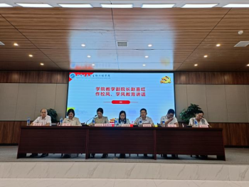 赵喜红针对我校“团结、严谨、勤奋、求实”的校风,“奋进、踏实、刻苦、活泼”的学风,“格物、明理、致知、笃行”的校训,向新生作了细致地讲解。