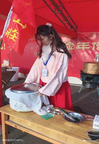 与此同时,19级环境工程三班郑菁棵同学在湖北省黄冈市蕲春县横车镇九棵松村参与了乡村旅游宣传志愿服务工作。工作期间郑菁棵曾多次担任汉服模特,并拍摄宣传视频。郑菁棵表示:“现如今乡村旅游十分火热,打造乡村旅游文化,一定能使乡村建设更上一层楼,我会力所能及的为家乡建设增砖添瓦。”(审稿 徐凯)