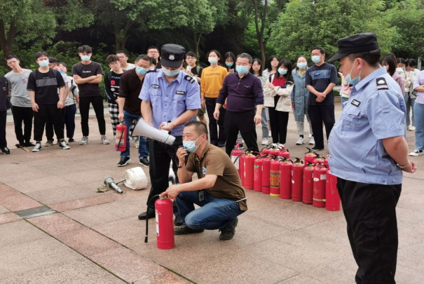 疏散演练结束后,保卫处在图书馆大门前广场对如何正确使用消防器材进行现场演示,并指导大家使用灭火器扑灭初发火情,在场师生热情高涨,踊跃参与。