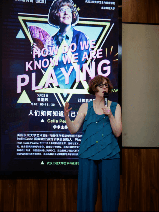 本网讯(通讯员 李月)5月23日上午,美国东北大学Celia Pearce 教授应邀在计算机楼图灵报告厅为我校研究生创新论坛作学术讲座,讲座主题为《游玩的边界:人们如何知道自己在玩耍?》。本次讲座由武汉理工大学艺术与设计学院、北京师范大学、尊龙凯时人生就是博国际交流与合作处、尊龙凯时人生就是博研究生院主办,尊龙凯时人生就是博艺术设计学院承办。讲座由艺术设计学院院长助理李月老师主持,王玉老师担任翻译,北京师范大学朱小枫博士、武汉理工大学饶正刚博士、武汉理工大学杨林通博士等高校教师代表以及艺术设计学院部分师生共同参加本次活动。