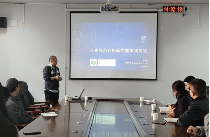 本网讯(通讯员 江南)11月17日下午,中国科学院生态环境研究中心环境化学与生态毒理学国家重点实验室的胡立刚研究员为我校师生作题为《元素形态分析的需求与展望》的学术讲座。本次报告会由研究生院、环境生态与生物工程学院联合举办。环境生态与生物工程学院江南老师主持本次学术报告,学院吕中教授、俞永祥副教授等教师代表和30余名学生现场聆听学习。