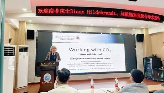 本网讯(通讯员 唐伊博)应学校化工与制药学院、国际交流合作处和研究生院邀请,6月21日下午,南非科学院和工程院两院院士,南非金山大学(University of the Witwatersrand)未来能源杰出教授Diane Hildebrandt和南非科学院院士,南非大学教授、博士生导师刘歆颖来校访问交流,并分别作了题为“Working with CO2”和“拥抱氢能源:南非煤化工企业的出路”的学术报告。报告会由化工与制药学院副院长龙思会主持,党委书记汪铁林、副院长金放以及学院100余名师生参加了此次报告会。