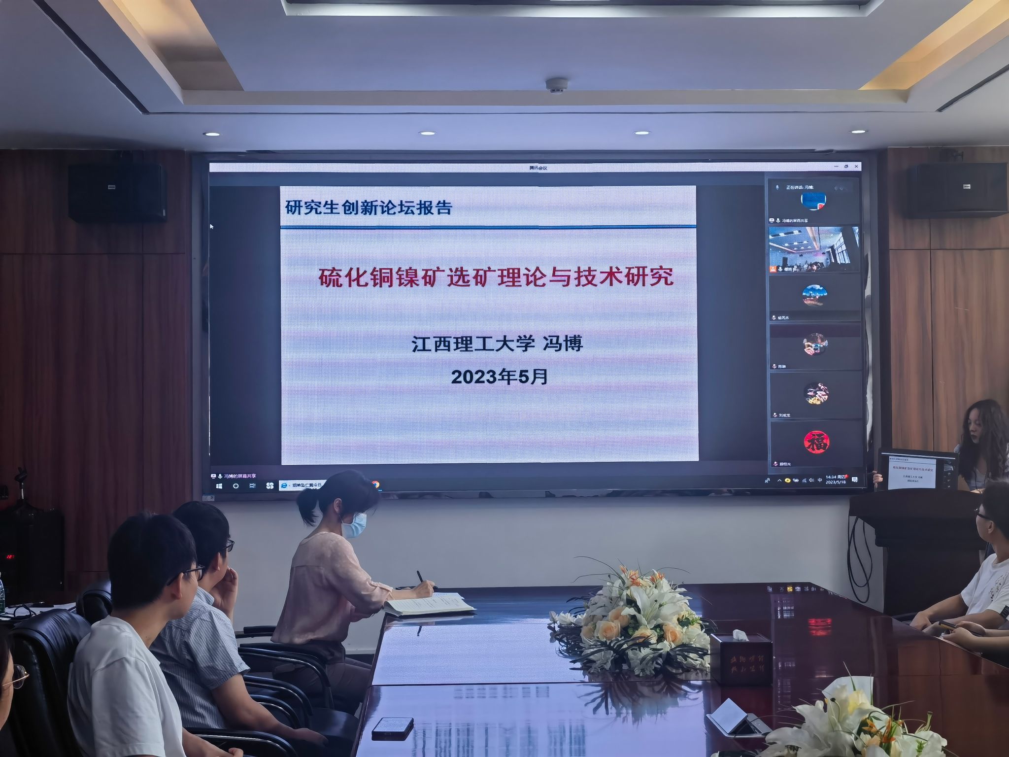 冯博教授此次报告内容分为镍资源概况、硫化铜镍矿中主要矿物及性质、硫化铜镍选矿工艺现状及理论研究进展,详细讲述了蛇纹石型和滑石型硫化铜镍矿选矿工艺,重点结合基础理论研究揭示硫化铜镍矿分选过程改善矿泥罩盖不利影响的方法,为研究生开展选矿技术与基础理论提供了研究思路和宝贵经验。