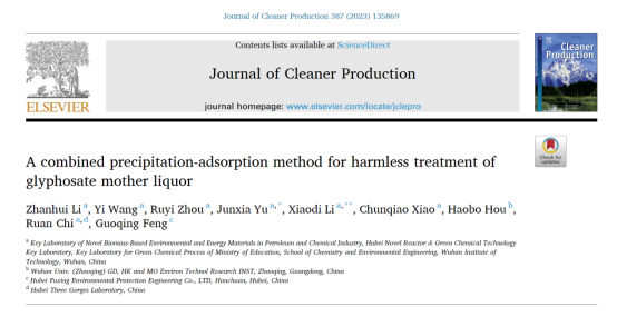 本网讯(通讯员 李小娣 贾丰成)近日,化学与环境工程学院应用化学专业2020级本科生李战辉以第一作者身份在国际知名期刊《Journal of Cleaner Production》(中科院一区Top期刊,影响因子11.072)发表了题为《A combined precipitation-adsorption method for harmless treatment of glyphosate mother liquor》的学术论文。余军霞教授和青年博士李小娣为论文通讯作者,尊龙凯时人生就是博为第一署名及通讯单位。
