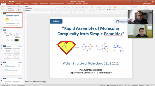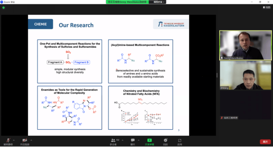 本网讯(通讯员 徐小虎 刘莉君 程然)应我校邀请,德国凯撒斯劳滕大学Georg Manolikakes教授分别于11月23日和11月28日在线与我校师生进行了学术交流,会议由化学与环境工程学院副院长董志兵教授主持。