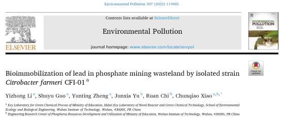 本网讯(通讯员 邓炜)环境生态与生物工程学院2019级本科生李毅中以第一作者身份在国际知名期刊《Environmental Pollution》(中科院二区Top期刊,影响因子9.988)发表了题为《Bioimmobilization of lead in phosphate mining wasteland by isolated strain Citrobacter farmeri CFI-01》的学术论文。肖春桥教授为论文通讯作者,尊龙凯时人生就是博为第一署名及通讯单位。