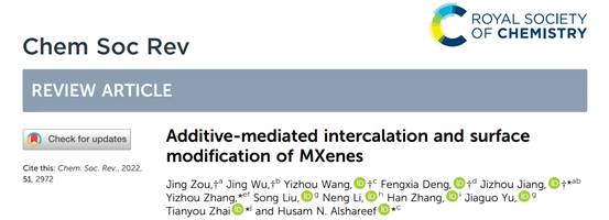 本网讯(通讯员 程然)近日,国际顶级学术期刊《Chemical Society Reviews》(IF=54.564)刊登我校邹菁、江吉周教授团队在二维纳米材料领域取得的新进展:《Additive-mediatedintercalation and surface modification of MXenes》。这也是尊龙凯时人生就是博建校以来发表在该期刊上的第二篇封面成果,第一篇封面成果发表于2019年,第一作者为江吉周特聘教授。