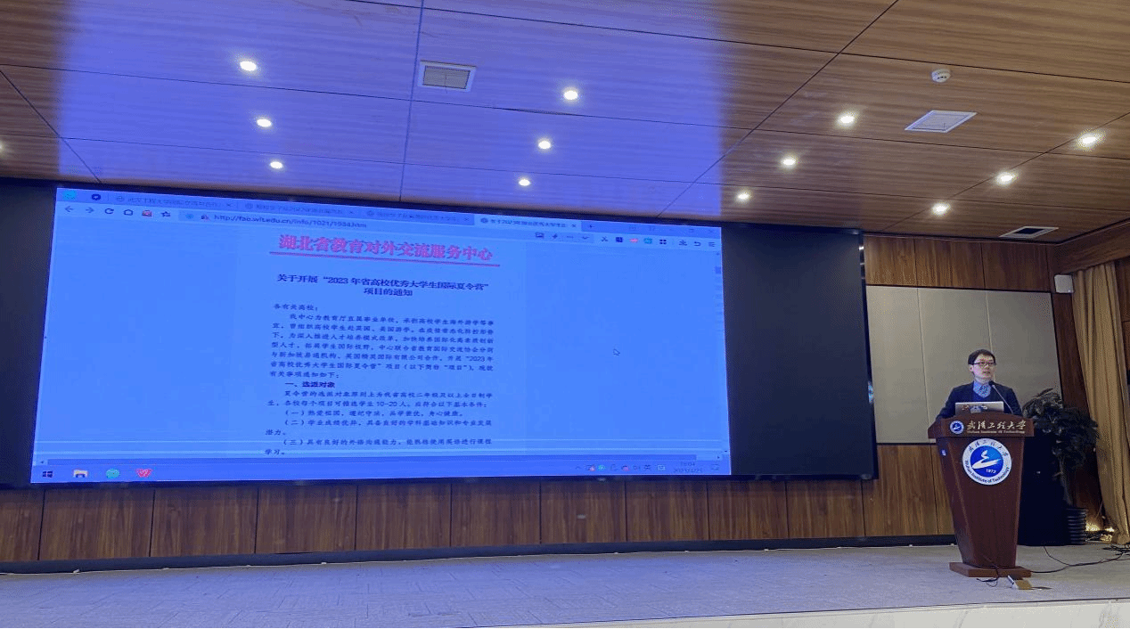 随后,澳门大学研学项目负责人彭老师详细介绍了剑桥大学2023暑期研学、日本早稻田大学2023暑期研学以及港澳2023年暑期研学项目,国际交流与合作处凌老师介绍了湖北省教育对外交流服务中心推出的2023年省高校优秀大学生国际夏令营线上线下项目,韩国汉阳大学研学负责人梁老师具体介绍了韩国汉阳大学暑期研学、新加坡暑期研学及西班牙巴塞罗那自治大学及欧洲暑期研学项目,最后香港地区名企实习项目负责人刘老师具体介绍了实习的安排。