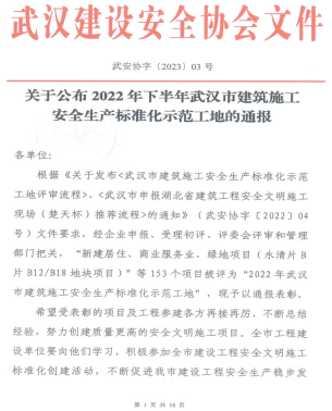 本网讯(通讯员 余显材)近日,从武汉建设安全协会获悉,我校在建的研究生公寓项目经评委会评审和管理部门把关,成功获评“2022年武汉市建筑施工安全生产标准化示范工地”。