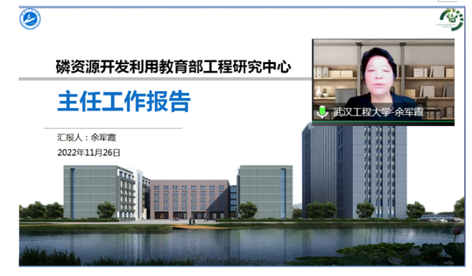 磷工程中心主任余军霞教授代表两个中心向与会的委员和领导作了主任工作报告,重点汇报了现有的研究方向、研究团队、研究成果、社会服务、成果转化、学术交流、人才培养和后续工作计划。工程中心三位中青年学者何东升、柴修伟、胡朴分别作了专题成果汇报,工程中心常务副主任李先福教授介绍了2022年度拟支持开放基金和创新基金项目。