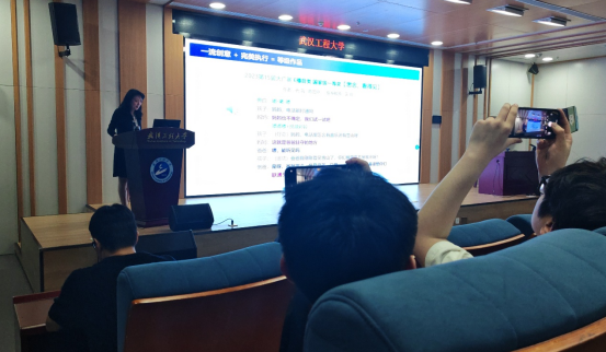 王晔为师生介绍了大广赛的相关主题和内容,重点以武汉大学学生在赛事中获得国家级奖项的各类作品为例,王晔老师通过逐一点评解析参赛作品,从创意理念、技术实现、艺术表现等维度系统阐释作品的创作亮点和艺术价值。这种多维度的深度剖析不仅向师生展示了优秀作品的生成逻辑,更通过案例示范引导教学双方深入理解如何依托个人专业优势,有机融合多种艺术表现手法,进而掌握提升作品创新性和感染力的实践路径。王晔老师强调,从“创意破圈思维”切入,剖析广告艺术的核心逻辑。她提出“广告的灵魂在于创意,但再好的创意也需要实际落地呈现在观众眼前。唯有经历完整的创作周期历练,方能建构对影视广告生产机制的系统性认知。在此过程中,学生的视听语言运用能力、叙事逻辑建构能力及数字技术整合能力得以协同发展,有效促进专业素养的迭代升级,最终达成应用型人才的培养目标。”