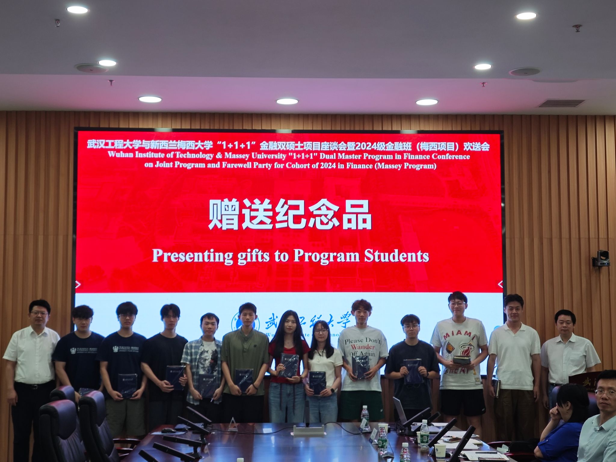 2023级项目生研究生陈丹丹、张自升从梅西大学就读期间的学习情况、生活环境、出行交通等方面在会上分享了自己的感受。2024级朱丽颖作为项目学生代表就2025年赴新西兰梅西大学深造表达了期待。同时在座谈会上,“1+1+1”金融双硕士项目参会学生就赴梅西大学攻读学位的培养路径、学业标准、手续准备等方面与新西兰梅西大学克莱尔·马修斯院长进行了充分的交流。最后,法商学院(知识产权学院)金明浩院长、研究生院张俊副院长代表学校向即将奔赴梅西大学的学子们赠送纪念品。