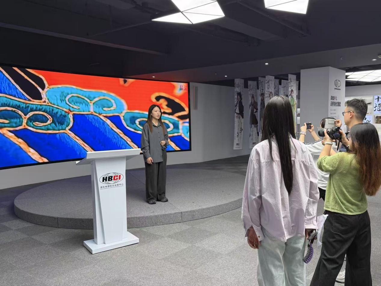 参观结束后,学院师生以国家级非物质文化遗产、湖北省首个文化类地理标志商标、湖北省民间传统美术——“武汉汉绣”为主题,开展湖北省地理标志品牌宣传活动的首次拍摄工作。