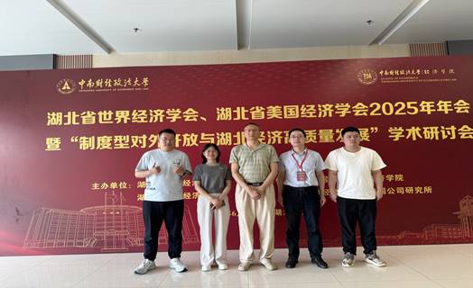 本网讯(通讯员 马鑫宇)6月21日,湖北省世界经济学会、湖北省美国经济学会2025年年会暨“制度型对外开放与湖北经济高质量发展”学术研讨会在中南财经政法大学南湖校区隆重举办,本次大会由中南财经政法大学经济学院、跨国公司研究所承办。学院教师周灏、付传明、蒋艳萍,金融硕士研究生马鑫宇、王祚应邀参加了本次会议。